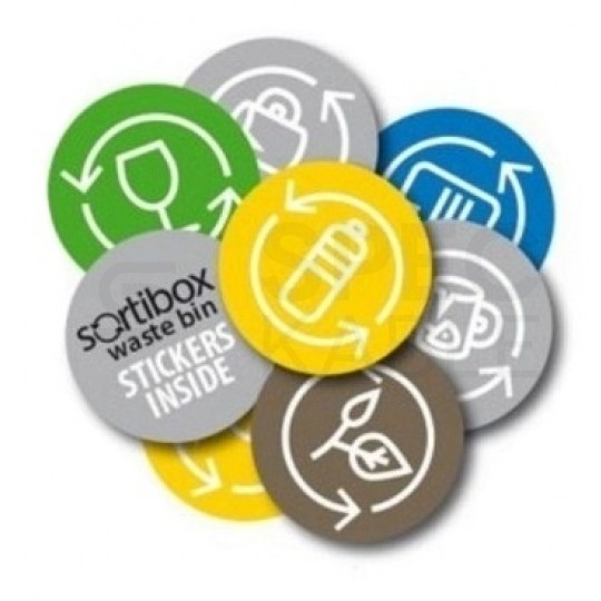 W każdym opakowaniu Sortibox znajduje się zestaw kolorowych naklejek z oznaczeniami, które znacznie ułatwiają segregację odpadów. Te kolorowe naklejki są niezwykle praktycznym dodatkiem, który pomaga w szybkim i łatwym rozpoznawaniu właściwego pojemnika do każdego rodzaju odpadu. Każda naklejka ma wyraźne oznaczenia, takie jak plastik, papier, szkło, metal czy bioodpady, co pozwala dokładnie i precyzyjnie segregować odpady.
