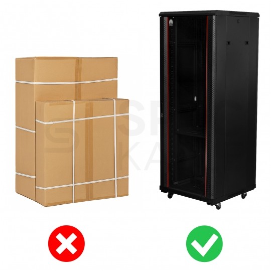 Szafa stojąca RACK 19" 42U 600x1000mm drzwi szklane czarna (złożona) NEKU FLR + wyposażenie