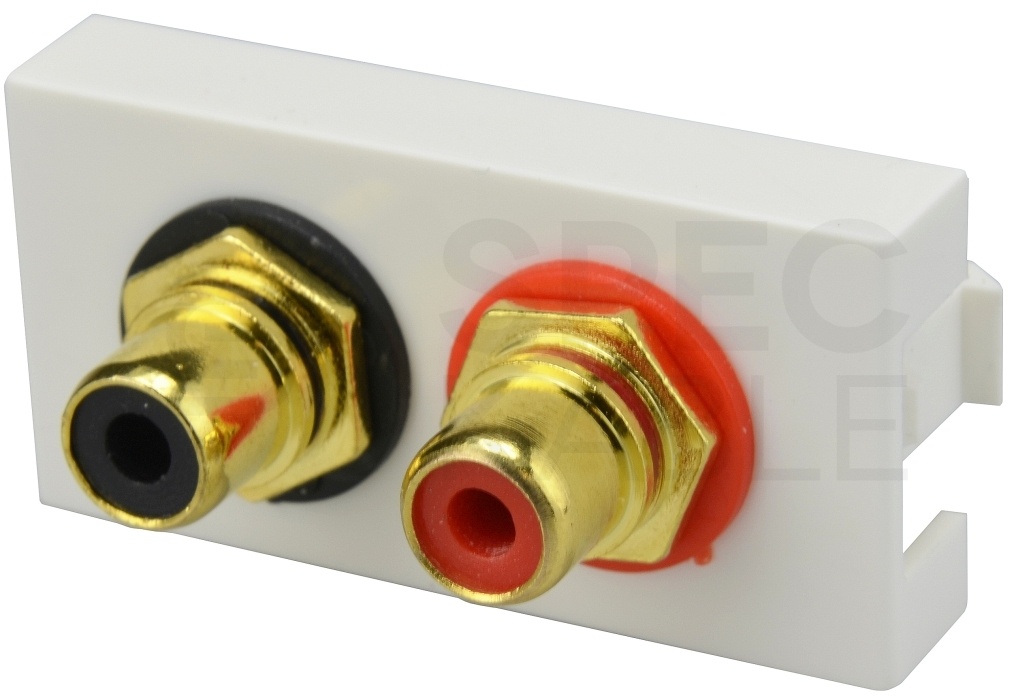 Gniazdo 2x RCA gold lutowane moduł 1M 22,5x45 biały Mediabox