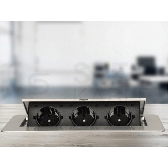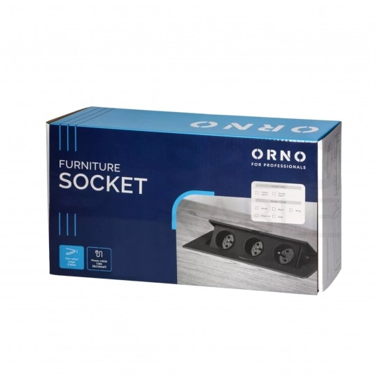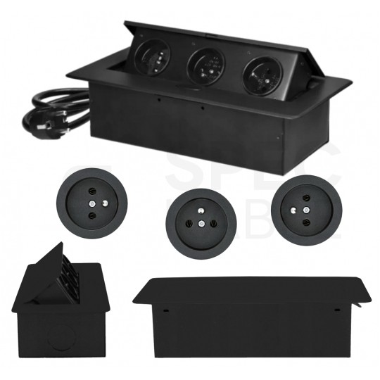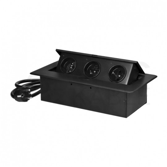 Gniazdo meblowe chowane w blat potrójne 3x [2P+Z] 16A metalowe czarne z przewodem 1,5m ORNO