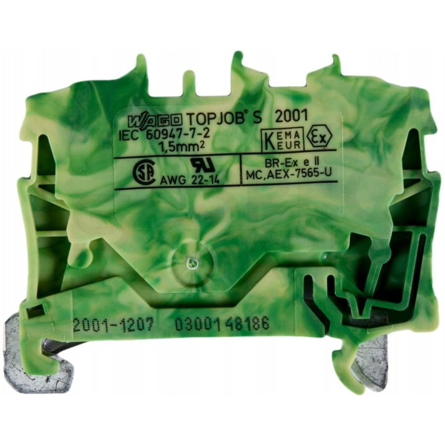 WAGO TOPJOBS 2001-1205 Złączka szynowa 2-przewodowa 1,5mm2 na szynę TH35 żółto-zielona